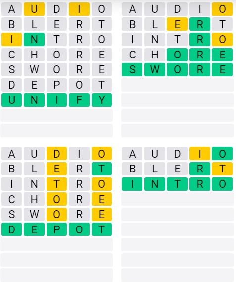 It is the most popular daily word game outside of Wordle due to the increased level of difficulty. Players must guess four five-letter words in as few as nine attempts, rather than guessing one word.
