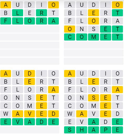 Let us know how many attempts it took you to guess today’s Quordle below!