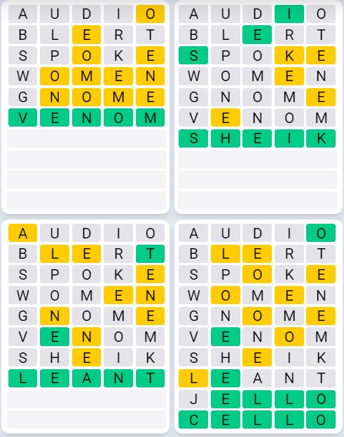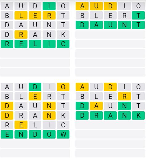 It is the most popular daily word game outside of Wordle due to the increased level of difficulty. Players must guess four five-letter words in as few as nine attempts, rather than guessing one word.