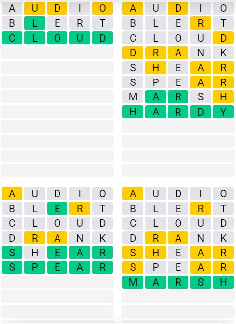 The answers to Quordle Sequence released today are: