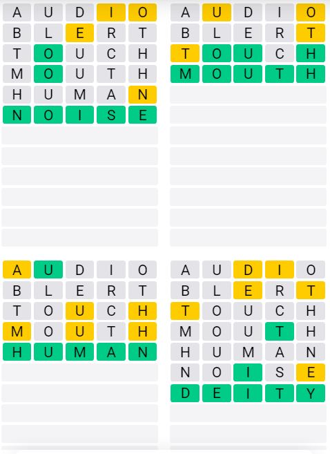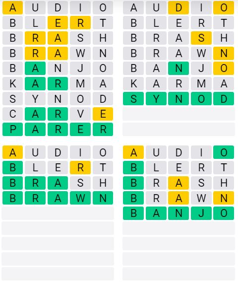 Let us know how many attempts it took you to guess today’s Quordle below!