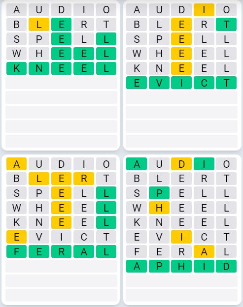 It is the most popular daily word game outside of Wordle due to the increased level of difficulty. Players must guess four five-letter words in as few as nine attempts, rather than guessing one word.