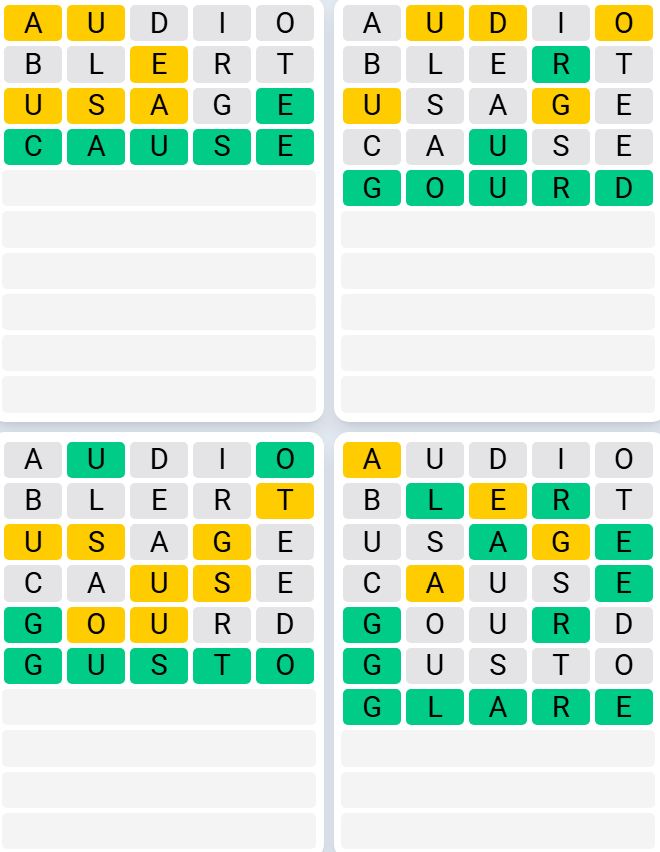 It is the most popular daily word game outside of Wordle due to the increased level of difficulty. Players must guess four five-letter words in as few as nine attempts, rather than guessing one word.