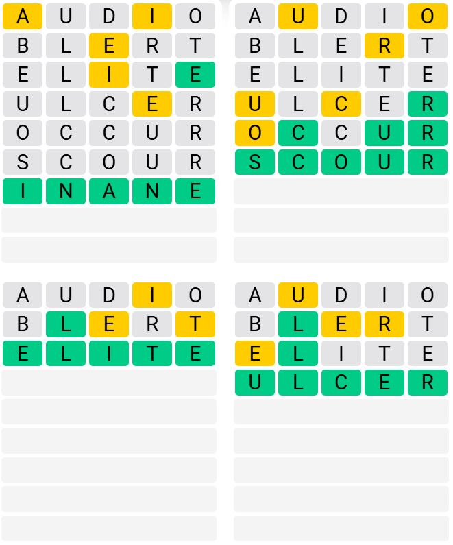 It is the most popular daily word game outside of Wordle due to the increased level of difficulty. Players must guess four five-letter words in as few as nine attempts, rather than guessing one word.
