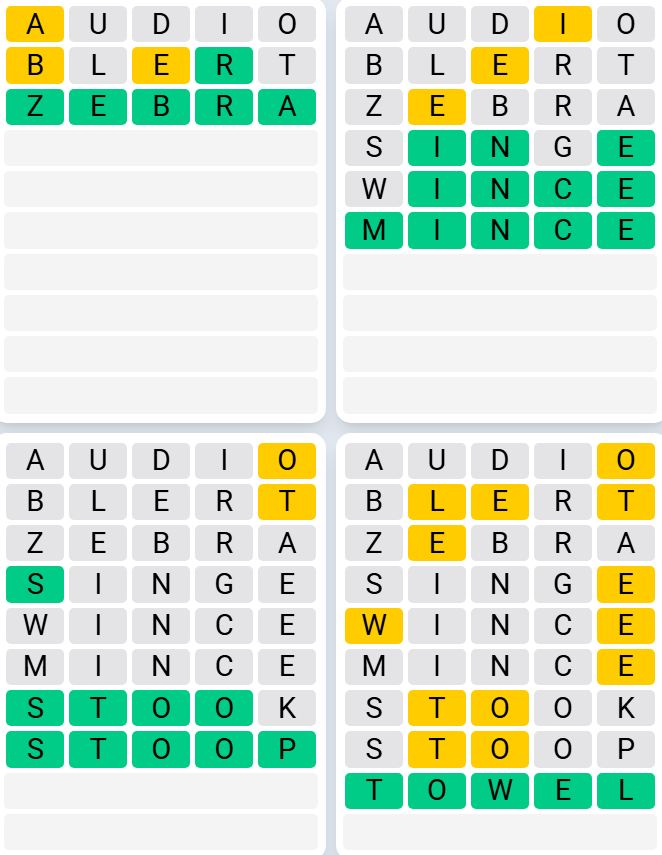 Let us know how many attempts it took you to guess today’s Quordle below.