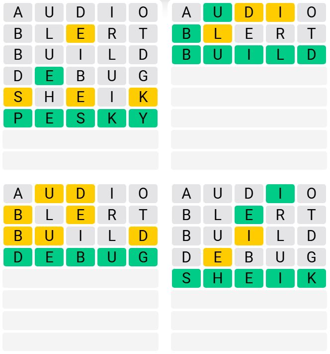 It is the most popular daily word game outside of Wordle due to the increased level of difficulty. Players must guess four five-letter words in as few as nine attempts, rather than guessing one word.