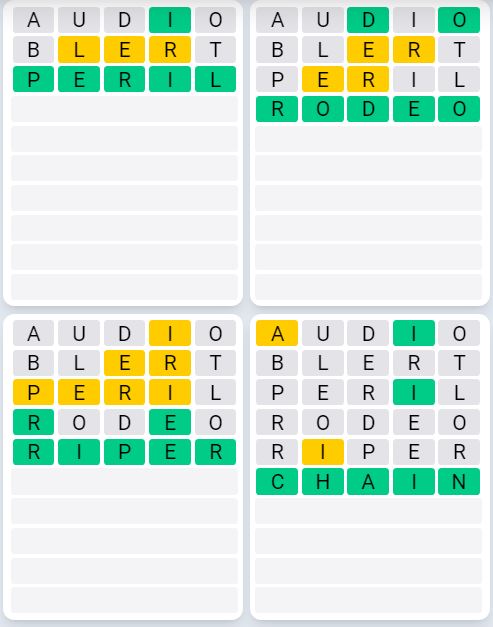 It is the most popular daily word game outside of Wordle due to the increased level of difficulty. Players must guess four five-letter words in as few as nine attempts, rather than guessing one word.