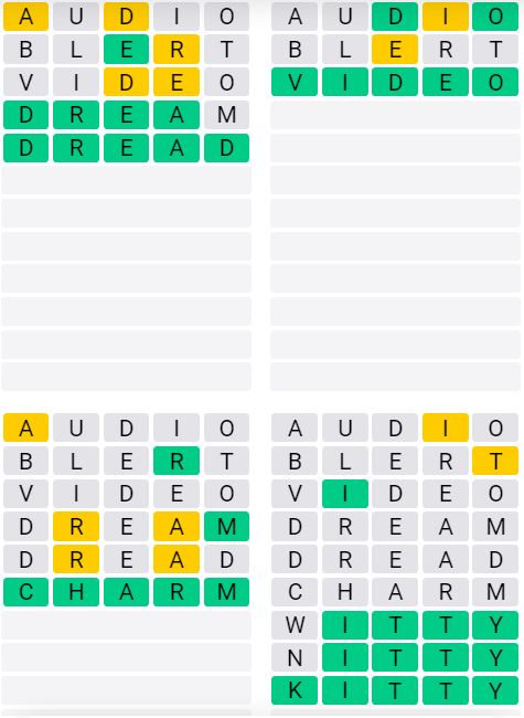 Let us know how many attempts it took you to guess today’s Quordle below!