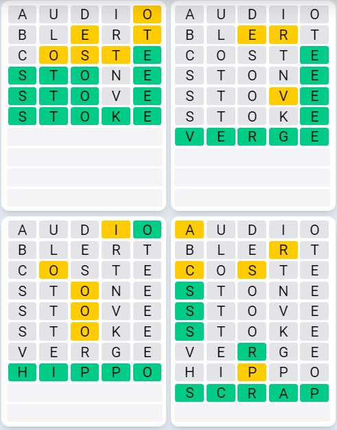 Let us know how many attempts it took you to guess today’s Quordle below!