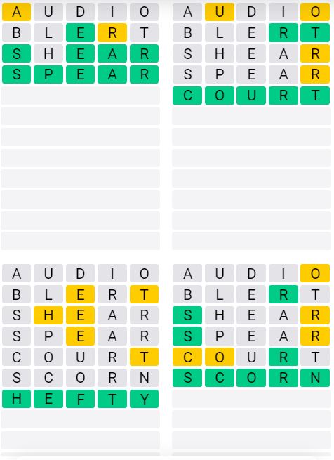 The answers to Quordle Sequence released today are: