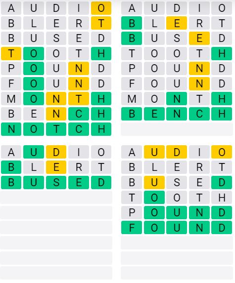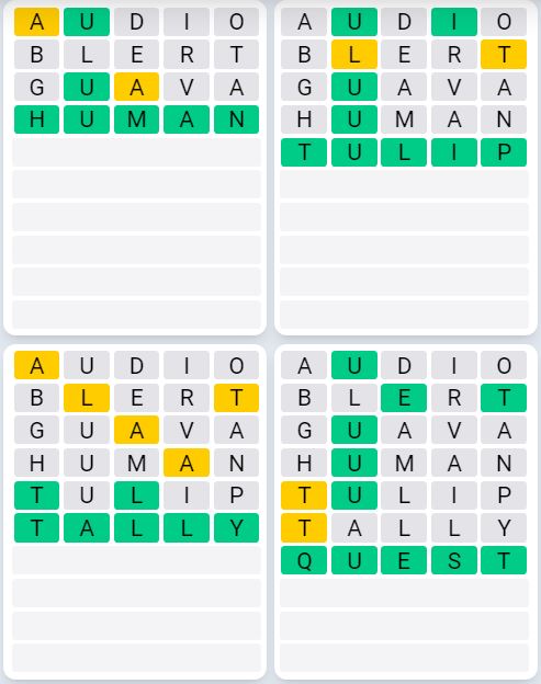 It is the most popular daily word game outside of Wordle due to the increased level of difficulty. Players must guess four five-letter words in as few as nine attempts, rather than guessing one word.
