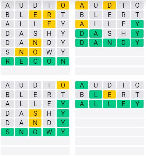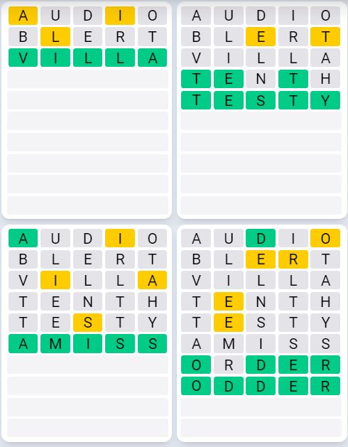 The answers to Quordle Sequence released today are: