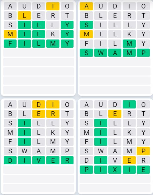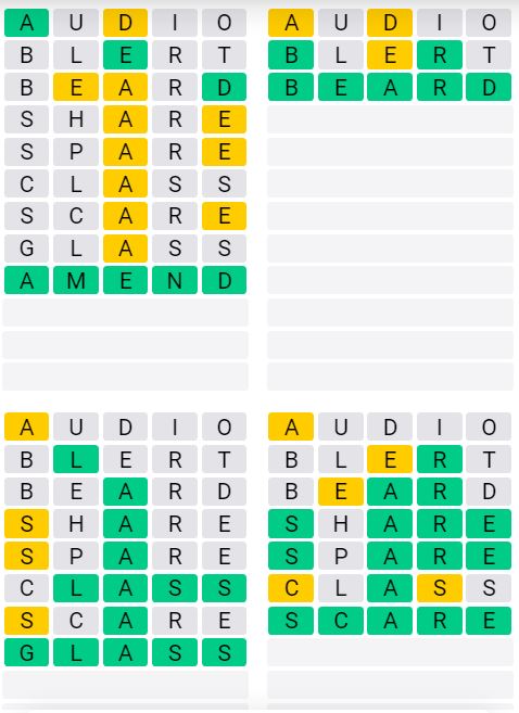 Let us know how many attempts it took you to guess today’s Quordle below!