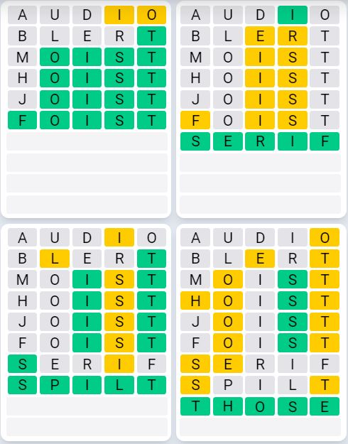 It is the most popular daily word game outside of Wordle due to the increased level of difficulty. Players must guess four five-letter words in as few as nine attempts, rather than guessing one word.