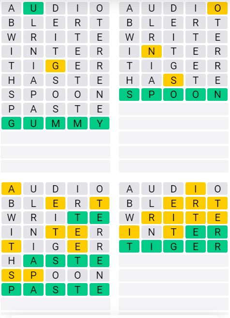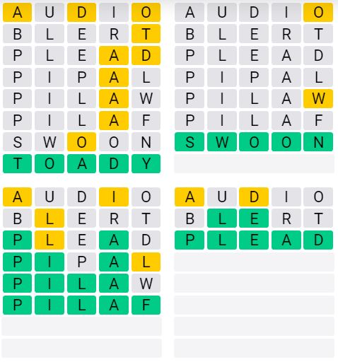 Let us know how many attempts it took you to guess today’s Quordle below!