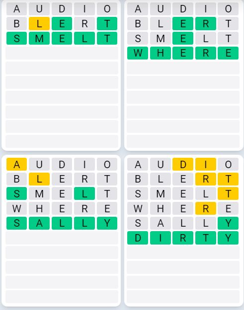 It is the most popular daily word game outside of Wordle due to the increased level of difficulty. Players must guess four five-letter words in as few as nine attempts, rather than guessing one word.