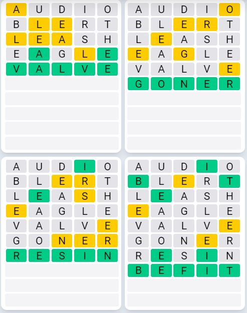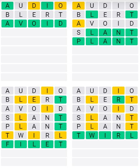 It is the most popular daily word game outside of Wordle due to the increased level of difficulty. Players must guess four five-letter words in as few as nine attempts, rather than guessing one word.