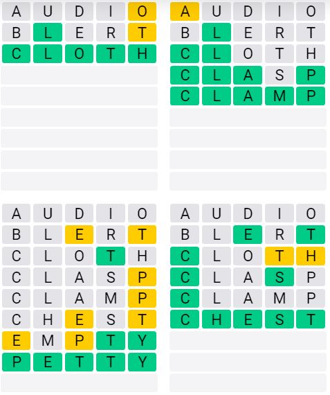 It is the most popular daily word game outside of Wordle due to the increased level of difficulty. Players must guess four five-letter words in as few as nine attempts, rather than guessing one word.