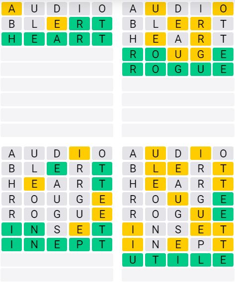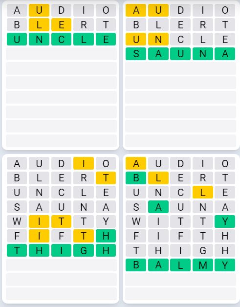 It is the most popular daily word game outside of Wordle due to the increased level of difficulty. Players must guess four five-letter words in as few as nine attempts, rather than guessing one word.