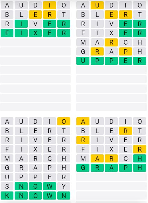 Let us know how many attempts it took you to guess today’s Quordle below!