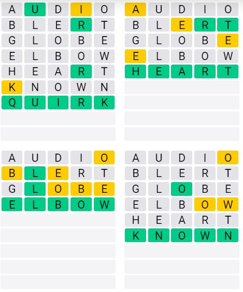 The answers to Quordle Sequence released today are: