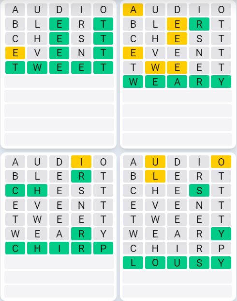 It is the most popular daily word game outside of Wordle due to the increased level of difficulty. Players must guess four five-letter words in as few as nine attempts, rather than guessing one word.