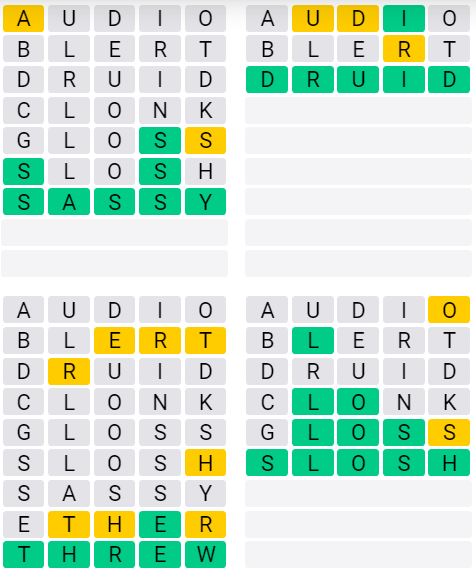The answers to Quordle Sequence released today are:
