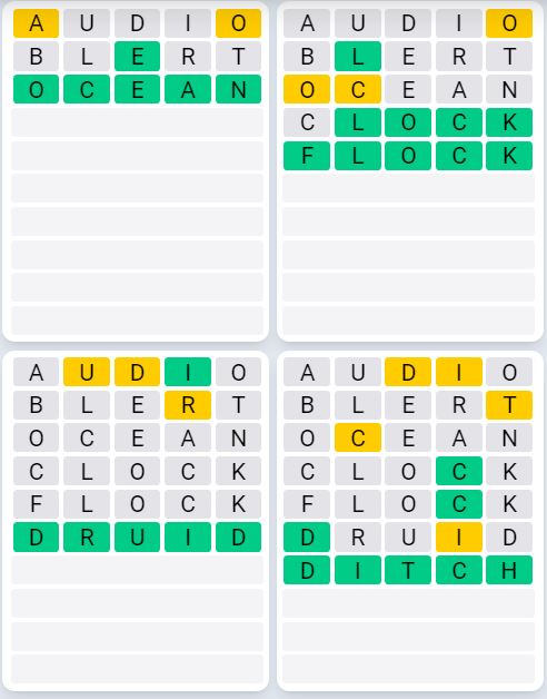 It is the most popular daily word game outside of Wordle due to the increased level of difficulty. Players must guess four five-letter words in as few as nine attempts, rather than guessing one word.