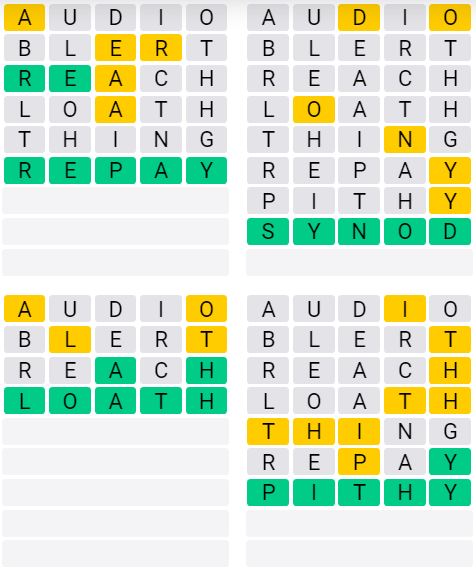 It is the most popular daily word game outside of Wordle due to the increased level of difficulty. Players must guess four five-letter words in as few as nine attempts, rather than guessing one word.