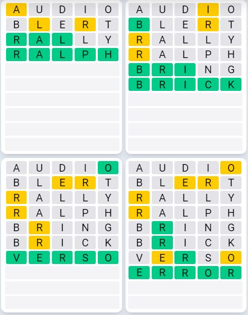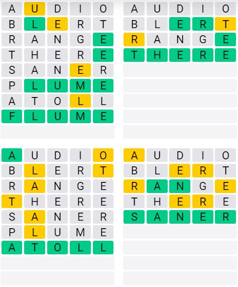 The answers to Quordle Sequence released today are: