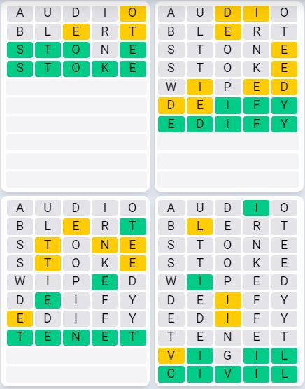 It is the most popular daily word game outside of Wordle due to the increased level of difficulty. Players must guess four five-letter words in as few as nine attempts, rather than guessing one word.
