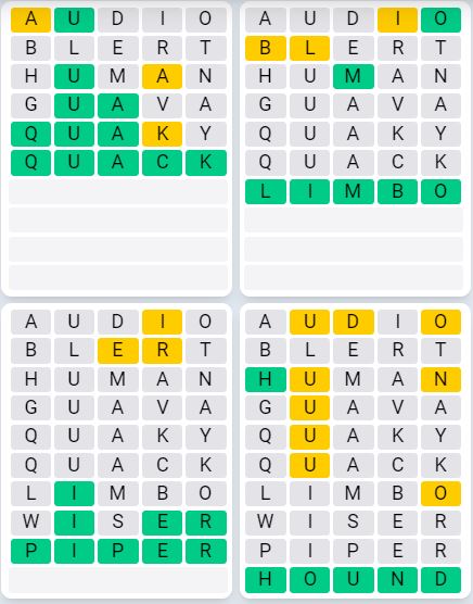 It is the most popular daily word game outside of Wordle due to the increased level of difficulty. Players must guess four five-letter words in as few as nine attempts, rather than guessing one word.