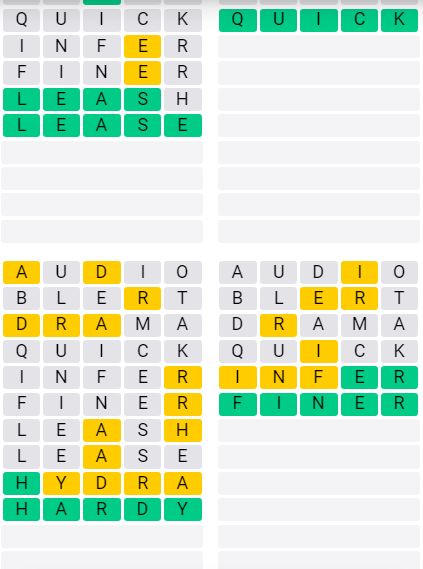 It is the most popular daily word game outside of Wordle due to the increased level of difficulty. Players must guess four five-letter words in as few as nine attempts, rather than guessing one word.