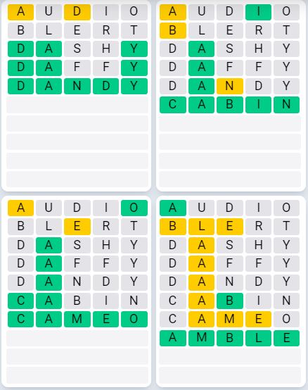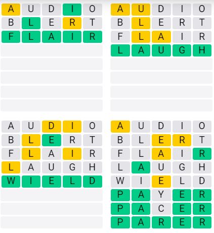 It is the most popular daily word game outside of Wordle due to the increased level of difficulty. Players must guess four five-letter words in as few as nine attempts, rather than guessing one word.