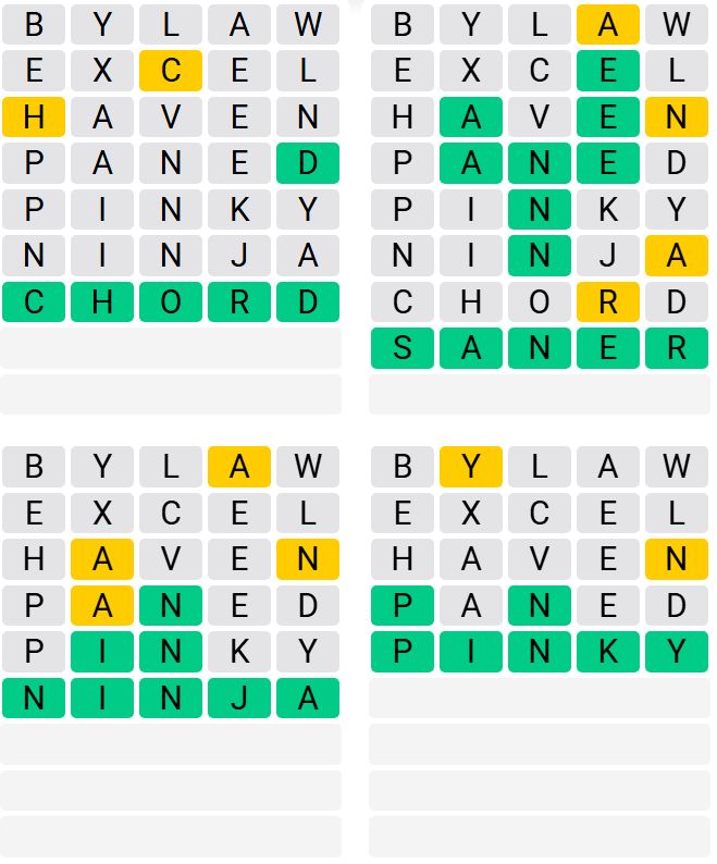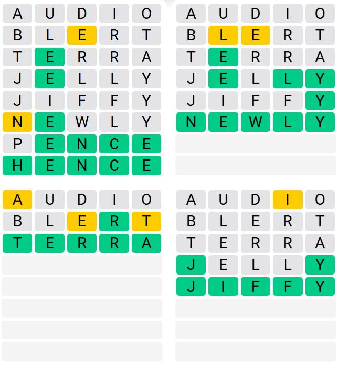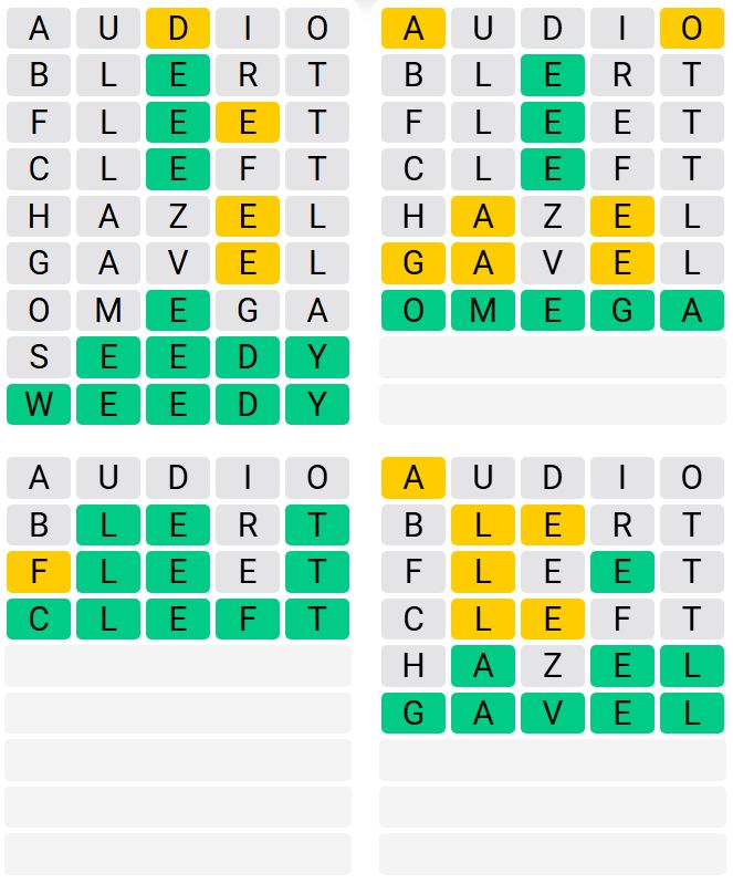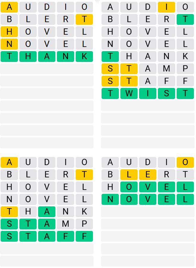 It is the most popular daily word game outside of Wordle due to the increased level of difficulty. Players must guess four five-letter words in as few as nine attempts, rather than guessing one word.