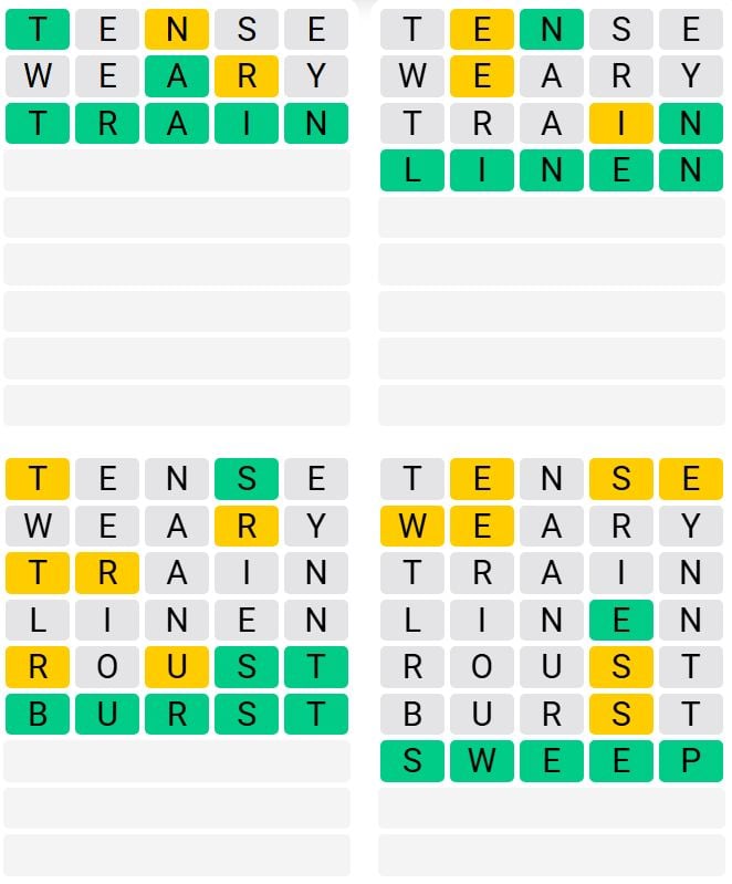 It is the most popular daily word game outside of Wordle due to the increased level of difficulty. Players must guess four five-letter words in as few as nine attempts, rather than guessing one word.