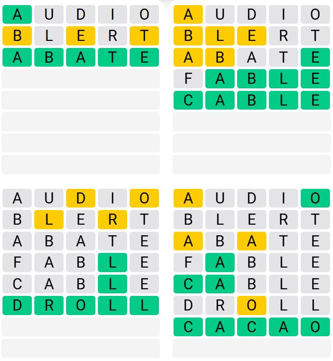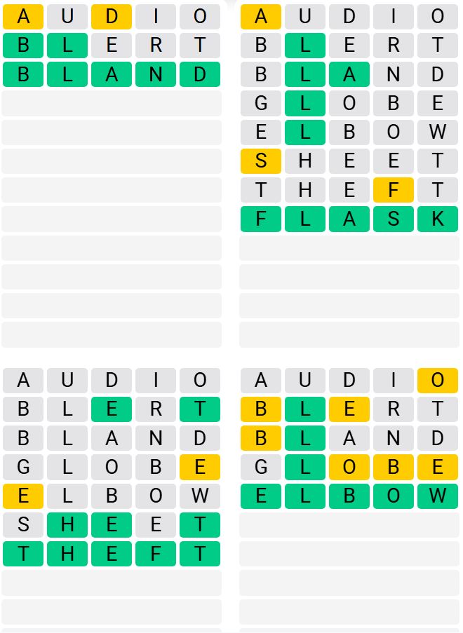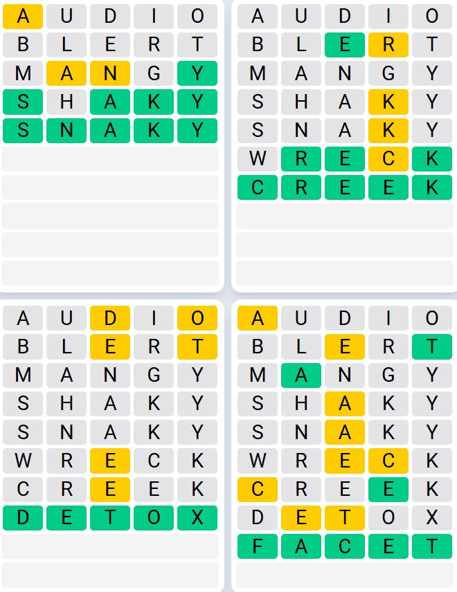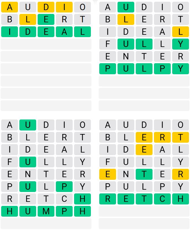 It is the most popular daily word game outside of Wordle due to the increased level of difficulty. Players must guess four five-letter words in as few as nine attempts, rather than guessing one word.