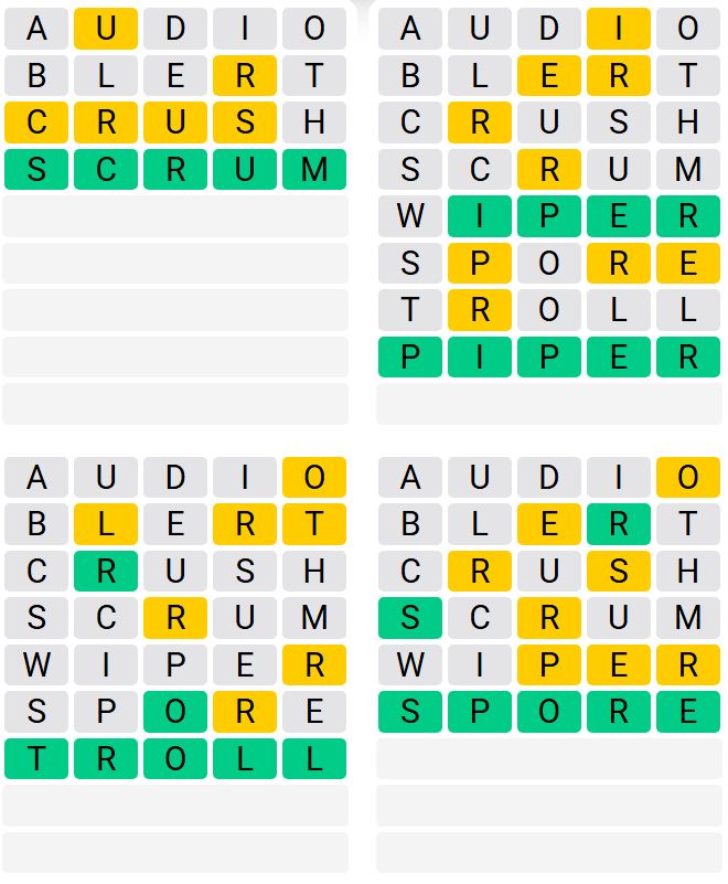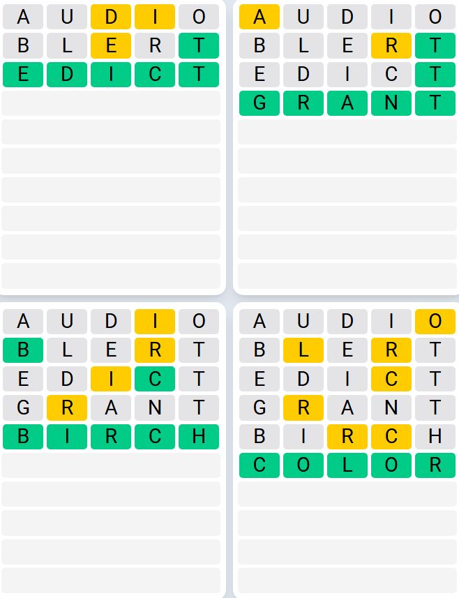 It is the most popular daily word game outside of Wordle due to the increased level of difficulty. Players must guess four five-letter words in as few as nine attempts, rather than guessing one word.