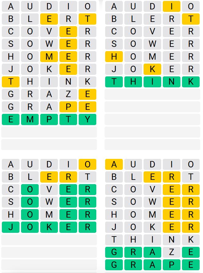 It is the most popular daily word game outside of Wordle due to the increased level of difficulty. Players must guess four five-letter words in as few as nine attempts, rather than guessing one word.