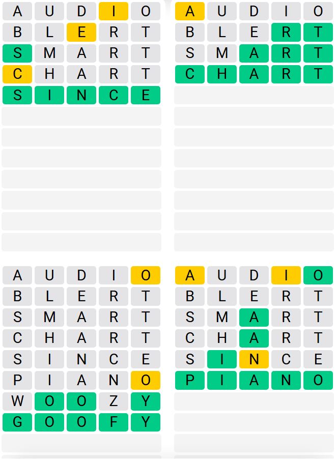 It is the most popular daily word game outside of Wordle due to the increased level of difficulty. Players must guess four five-letter words in as few as nine attempts, rather than guessing one word.