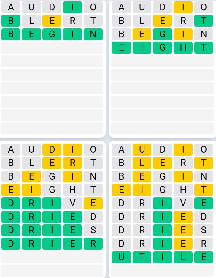 It is the most popular daily word game outside of Wordle due to the increased level of difficulty. Players must guess four five-letter words in as few as nine attempts, rather than guessing one word.
