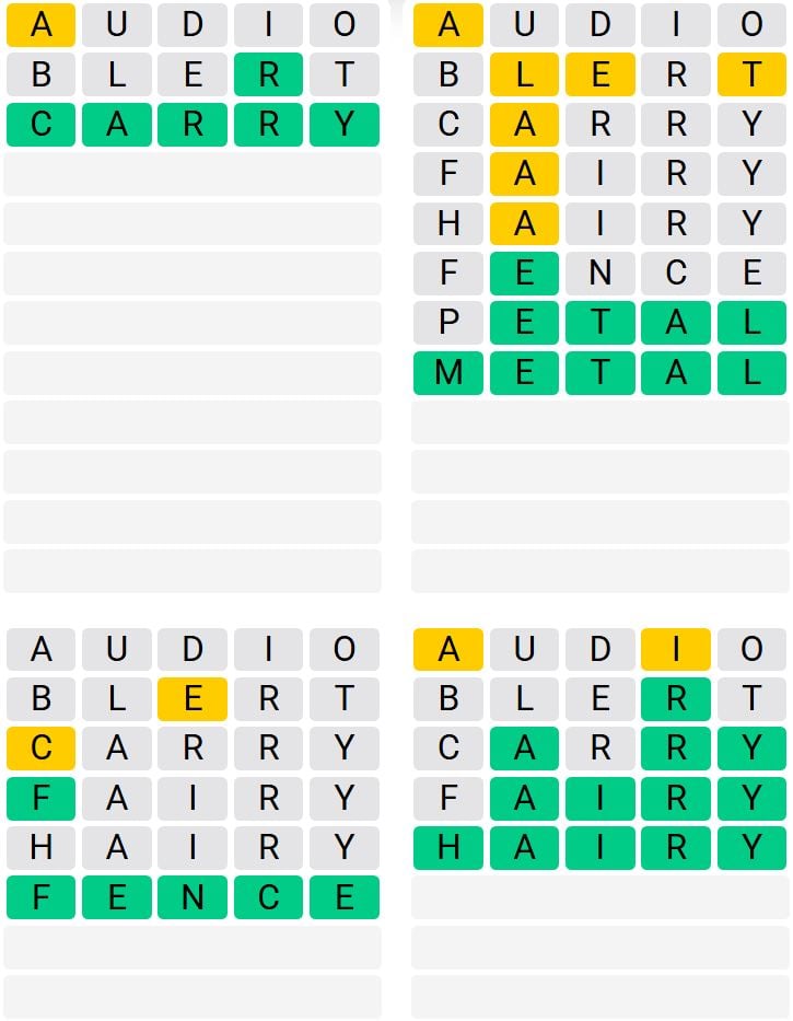It is the most popular daily word game outside of Wordle due to the increased level of difficulty. Players must guess four five-letter words in as few as nine attempts, rather than guessing one word.
