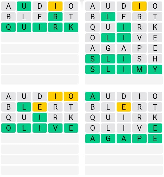 Let us know how many attempts it took you to guess today’s Quordle below.