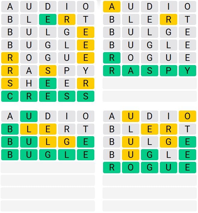 Let us know how many attempts it took you to guess today’s Quordle below.