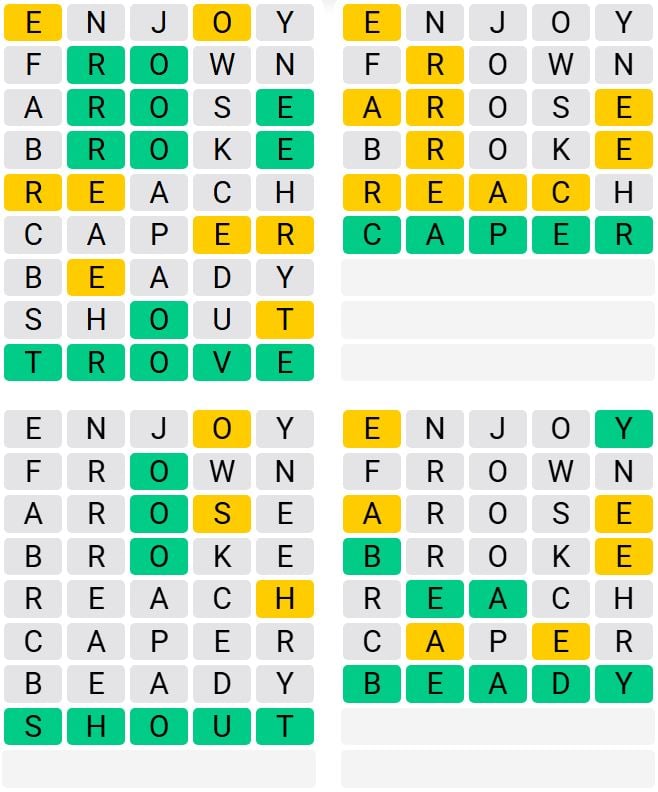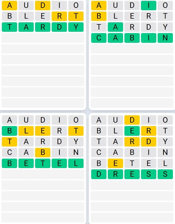It is the most popular daily word game outside of Wordle due to the increased level of difficulty. Players must guess four five-letter words in as few as nine attempts, rather than guessing one word.