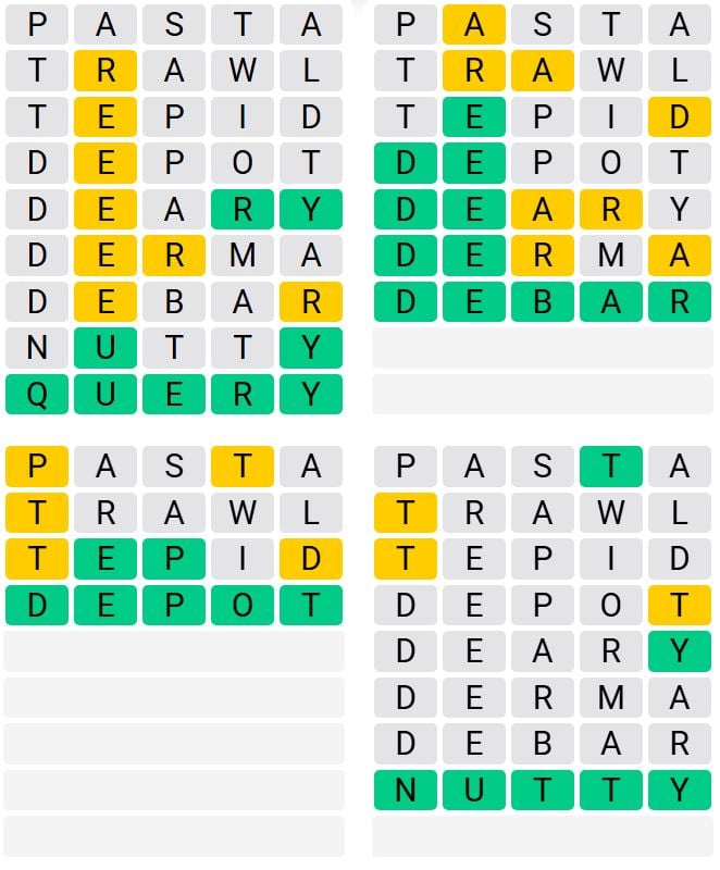 It is the most popular daily word game outside of Wordle due to the increased level of difficulty. Players must guess four five-letter words in as few as nine attempts, rather than guessing one word.