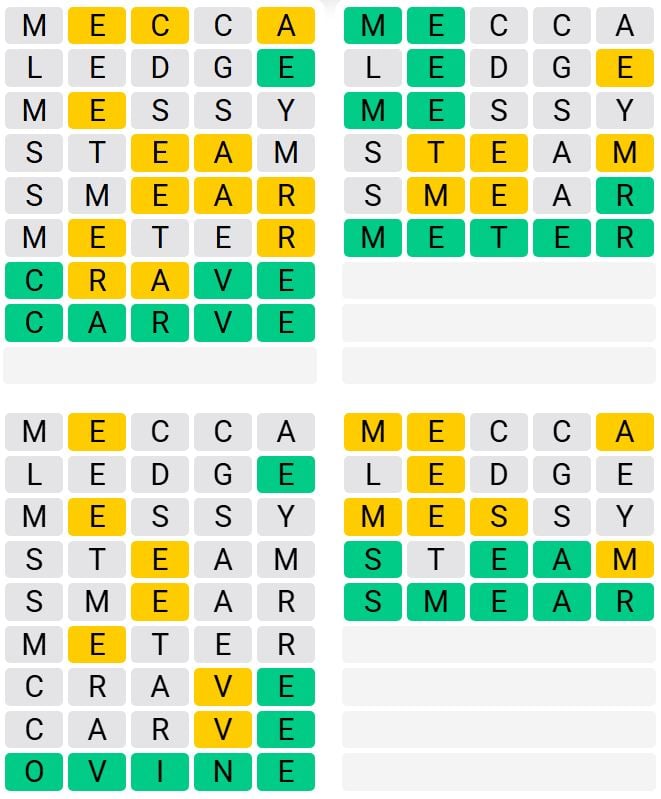 It is the most popular daily word game outside of Wordle due to the increased level of difficulty. Players must guess four five-letter words in as few as nine attempts, rather than guessing one word.