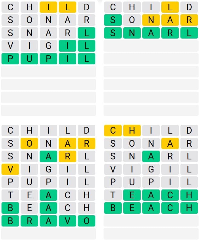 It is the most popular daily word game outside of Wordle due to the increased level of difficulty. Players must guess four five-letter words in as few as nine attempts, rather than guessing one word.
