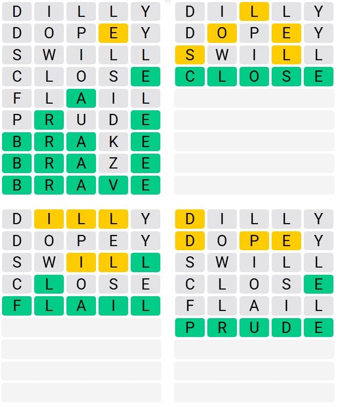It is the most popular daily word game outside of Wordle due to the increased level of difficulty. Players must guess four five-letter words in as few as nine attempts, rather than guessing one word.