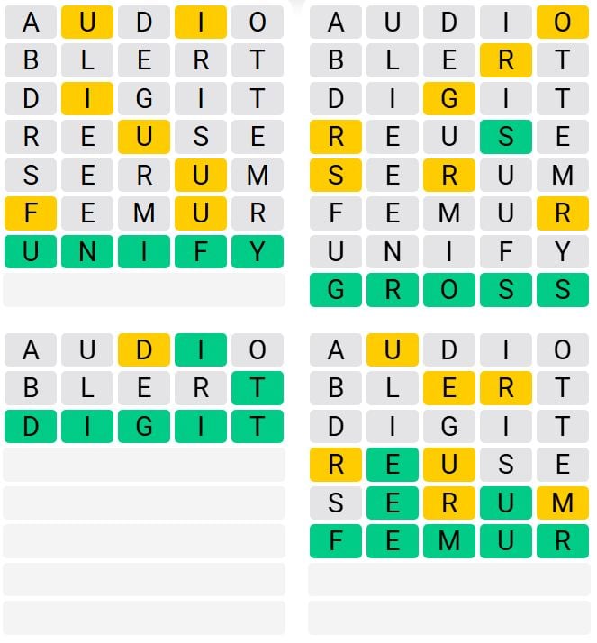 Let us know how many attempts it took you to guess today’s Quordle below.
